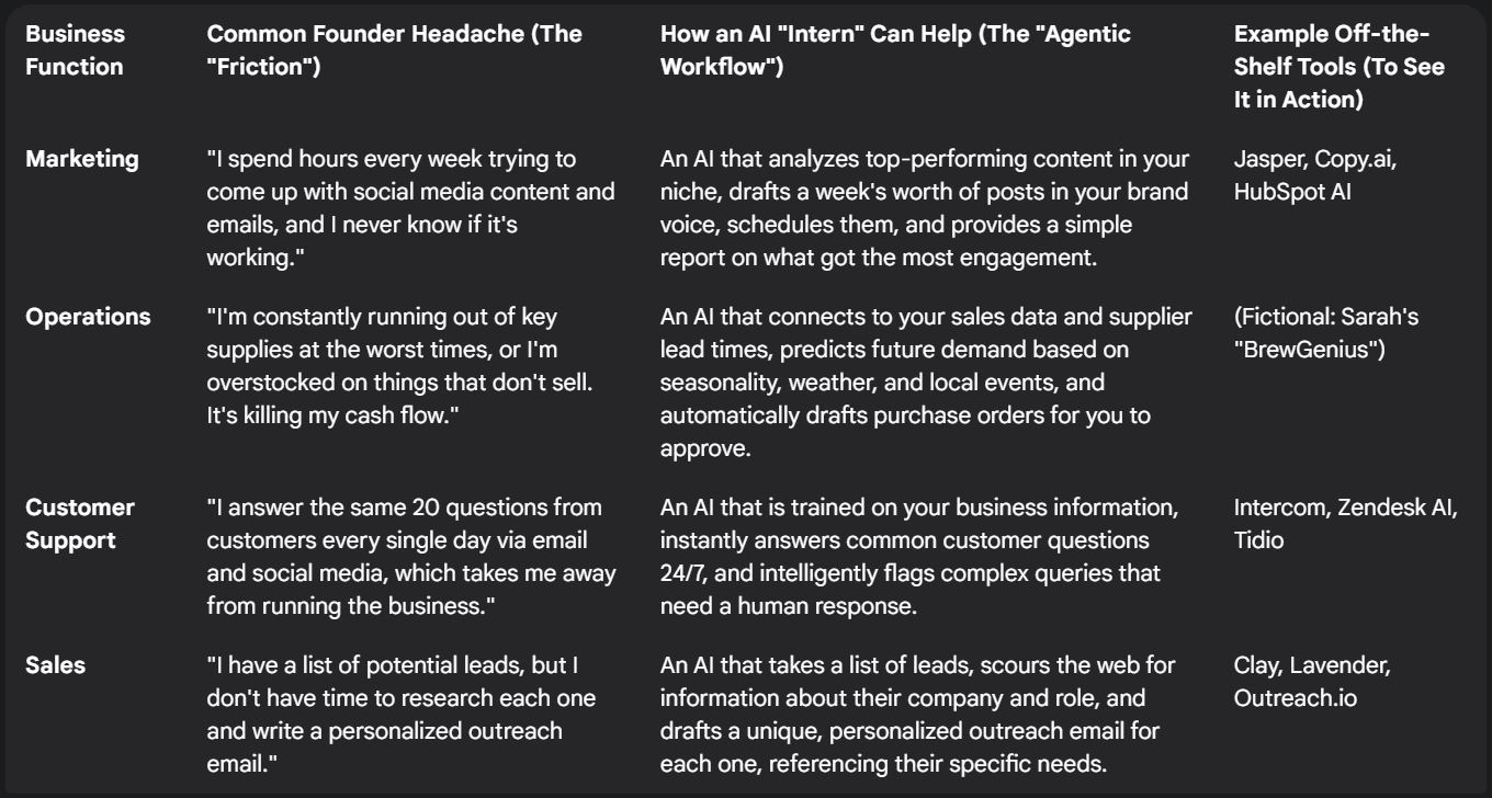 To help founders identify these opportunities, the following matrix connects common business headaches with the potential for an AI-powered solution.